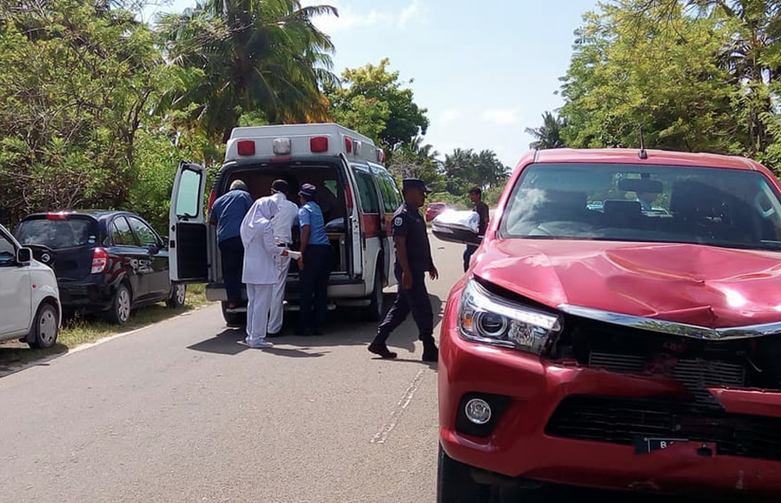 މިހާރު މާލޭގައި ފަރުވާ ހޯދަމުން އަންނަ އަނަސް ބުނީ ޕިކަޕް ފަހަތުން އައިސް ސައިކަލުގައި ޖެއްސީ، ސްޕީޑް ބްރޭކަރަކަށް އޭނާ ސައިކަލު މަޑުކޮށްލި ވަގުތު ކަމަށެވެ. އަދި ޕިކަޕް ދުއްވާފައި އައީ ވަރަށް ބާރަށް ކަމަށް ވެސް އޭނާ ބުންޏެވެ.