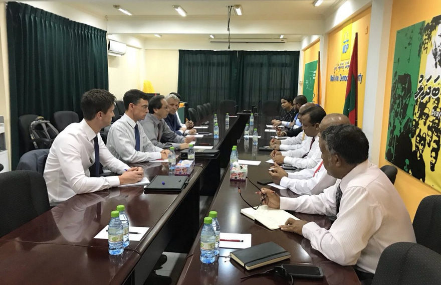 ރާއްޖޭގެ މިހާރުގެ ސިޔާސީ ހާލަތާ މެދު ކަންބޮޑުވުން ފާޅުކުރުމަށް ފަހު، ޔޫރަޕިއަން ޔޫނިއަން (އީޔޫ)ގެ ގައުމުތަކުގެ ސަފީރުން ހިމެނޭ އިސް ވަފުދެއް ރޭ ރާއްޖެ އަތުވެއްޖެ އެވެ.