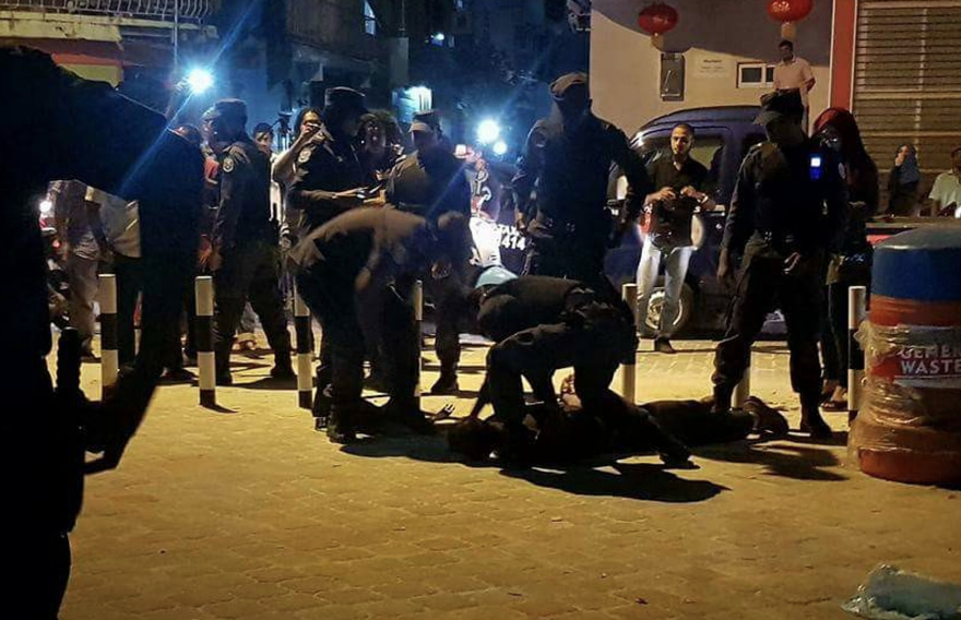 މުރުޝިދު ހައްޔަރުކޮށްފައި ވަނީ ރޭ 12 ޖަހާކަންހާއިރު ޗައިނާ އެމްބަސީ ސަރަހައްދުގައި މުޒާހަރާ ކަވަރު ކުރަމުން ދަނިކޮށެވެ. ފުލުހުން މުރުޝިދު ހައްޔަރުކުރުމަށް، އޭނާ ބިންމައްޗަށް ވައްޓާލައި އަތް އަނބުރާލައި، ގަދަކަމުން ވަނީ ބިޑި އަޅުވައިފަ އެވެ. ބިޑި އެޅުވުމަށް ފަހު ދެ ފުލުހަކު ވެގެން މުރުޝިދު ގެންދިޔައީ ބިންމަތީގައި ދަމަމުންނެވެ.