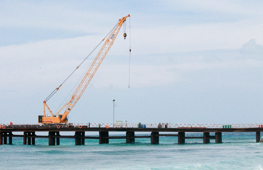 ބްރިޖްގެ މަސައްކަތް ޝެޑިއުލްކޮށްފައިވާ ގޮތަށް ކުރިއަށްދާއިރު، އިއްޔެ ވެސް ޗައިނާ އިން ގިނަ އަދަދެއްގެ ސާމާނު ގެނެސް އެ ސަރަހައްދަށް ވަނީ ޖަމާކޮށްފަ އެވެ. އޭގެ ތެރޭގައި ފްލޯޓިން ކްރޭނާއި ބާޖުތައް ހިމެނެ އެވެ. އަދި ގިނަ އަދަދެއްގެ ސާމާނު މިއަދު ވެސް ގެންނަން ވަނީ ނިންމައިފަ އެވެ.