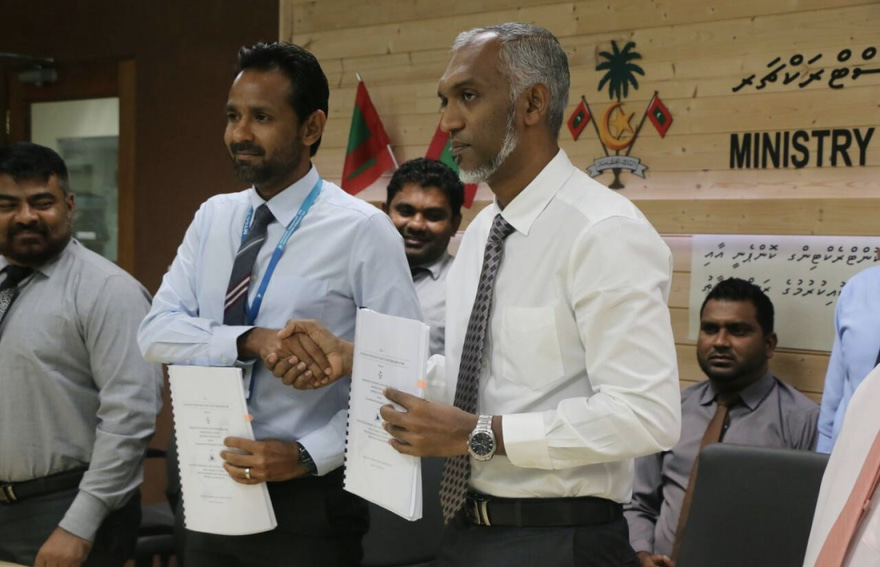 ސަރުކާރުގެ ބަޖެޓުން 46 މިލިއަން ރުފިޔާ ޚަރަދުކޮށްގެން ހިންގާ އެ މަޝްރޫއު އެމްޓީސީސީއާ ހަވާލުކުރުމުގެ އެއްބަސްވުމުގައި ހައުސިން މިނިސްޓްރީން ސޮއިކުރެއްވީ މިނިސްޓަރު ޑރ. މުހައްމަދު މުއިއްޒެވެ. އެމްޓީސީސީގެ ފަރާތުން ސޮއިކުރެއްވީ އެ ކުންފުނީގެ މެނޭޖިން ޑިރެކްޓަރު އިބްރާހިމް ޒިޔަތެވެ.