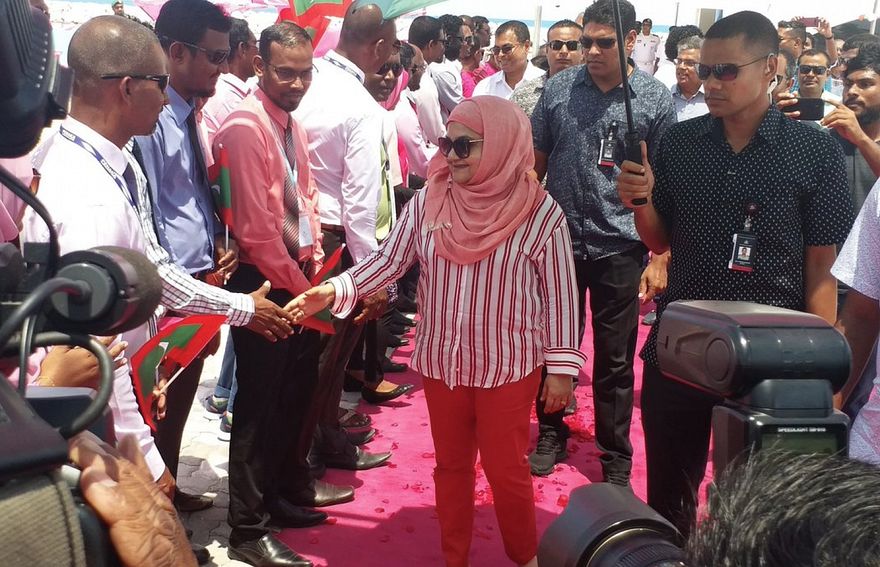 ފަސްޓް ލޭޑީ މީގެ ކުރިން ވެސް ވަނީ ރައީސް ޔާމީންގެ ރިޔާސީ ކެމްޕެއިނަށް ބައެއް ރަށްރަށަށް ވަޑައިގެންފަ އެވެ. ރައީސް ޔާމީން ވަނީ މި އަހަރުގެ ރިޔާސީ އިންތިޚާބުގައި ވާދަކުރައްވަން ނިންމަވައިފަ އެވެ.