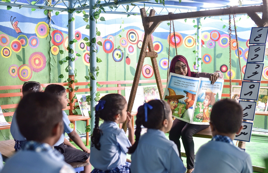 ވަރަށް ހިތްގައިމު، ރީތި އައުޓްޑޯ ކްލާސްރޫމެއް ޖަމާލުއްދީން ސްކޫލުގައި މިއަދު ހުޅުވައިފި އެވެ. މިއީ މާލޭގެ ސްކޫލެއްގައި ހުޅުވި މިފަދަ ފުރަތަމަ ކްލާސްރޫމެވެ.