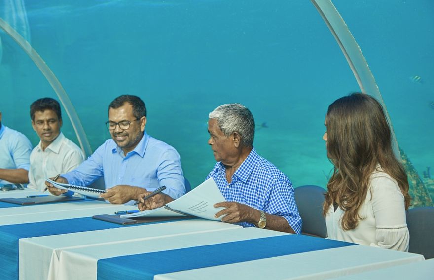 ޅ. ހުރަވަޅީގައި ހުންނަ ކަނޑުއަޑީގެ، ދުނިޔޭގެ އެންމެ ބޮޑު ރެސްޓޯރަންޓްގައި ބޭއްވި ރަސްމިއްޔާތުގަައި، އެއާޕޯޓު އެޅުމުގެ އެއްބަސްވުމުގައި ސަރުކާރުގެ ފަރާތުން ސޮއިކުރެއްވީ ޓޫރިޒަމް މިނިސްޓަރު އަދި ޕީޕީއެމްގެ ނައިބު ރައީސް މޫސާ ޒަމީރެވެ. ކުރެއްދޫ ހޯލްޑިންގްސްގެ ފަރާތުން ސޮއިކުރެއްވީ އުއްޗު އެވެ.