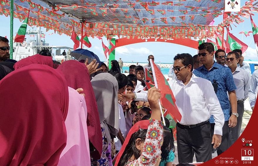 "ކުށްވެރިންތަކެއް ޖަލުގައި ތިބެގެން، ހުރިހާ އެންމެންނަކީ ޖަލުން ދޫވެފައި ތިބެން ޖެހޭނެ ބައެއް ކަމަށް އީޔޫން އަޅުގަނޑަށް ގޮވާލަނީ. އަދި މިނިވަން އިންސާފުވެރި އިންތިޚާބެއް ކަަމަށް ތިމަންނަމެން ގަބޫލުކުރާނީ، ހުރިހާ ކުށްވެރިން ވެސް ދޫކޮށްލީމައޭ، އެންމެންނަށް އިންތިޚާބުގައި ބައިވެރިވުމުގެ ޖާގަ ހޯދައިދިނީމައޭ. ނޫން، އަޅުގަނޑު އެކަމެއް ގަބޫލެއް ނުކުރާނަން،" ރައީސް ޔާމީން ވިދާޅުވި އެވެ.