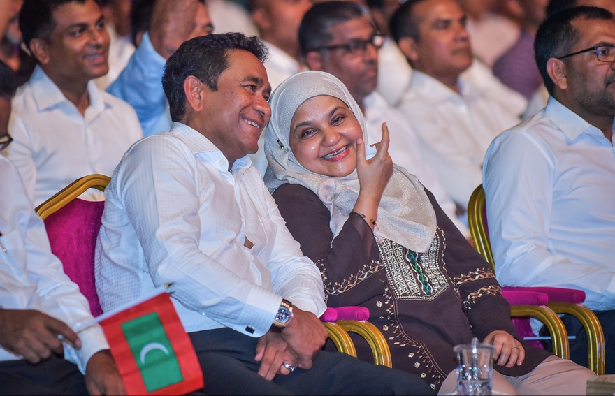 "އަޅުގަނޑުގެ އަންހެނުން ރަސްމީ މަގާމެއް ބޭނުމެއް ނުވާނެ. ޕީޕީއެމްގެ ހައިސިއްޔަތެއް ވެސް ބޭނުމެއް ނުވާނެ. ދިވެހި ރައްޔިތުންގެ ޚިދުމަތުގައި، ޚާއްސަކޮށް އަންހެނުންގެ ޚިދުމަތުގައި މަގާމެއް، ހައިސިއްޔަތެއް ނެތި ދެމިހުންނަވާނެ،" ރައީސް ޔާމީން ވިދާޅުވި އެވެ.
