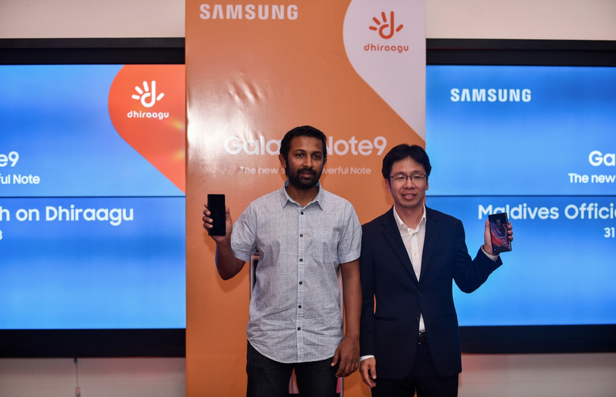 ދިރާގުން ގެލެކްސީ ނޯޓު 9 ރަސްމީކޮށް ތައާރަފްކޮށް ވިއްކަން ފެށުމުގެ ރަސްމިއްޔާތުގައި ދިރާގުގެ ސީނިއާ ބްރޭންޑް އެންޑް މާކެޓިން މެނޭޖަރު މުހައްމަދު މިރުޝާންގެ އިތުރުން ސެމްސަންގްގެ ޑިރެކްޓާ މޮބައިލް ވައިކޭ ވަންގް ވެސް ބައިވެރިވެވަޑައިގެންނެވި އެވެ.