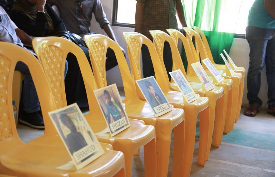 ގިނަ އަދަދެއްގެ ބަޔަކާއެކު، ކޮލަމާފުށީގައި ބޭއްވި ޖަލްސާގެ ފުރަތަމަ ބަރީގައި ހުސް ގޮނޑިތަކެއް ހުރިއިރު، ގޮނޑިމަތީގައި ހުރީ ހައްޔަރު ކުރި މީހުންގެ ނަމާއި ފޮޓޯ ޖަހާފައި ހުރި ޕޯސްޓަރުތަކެވެ.