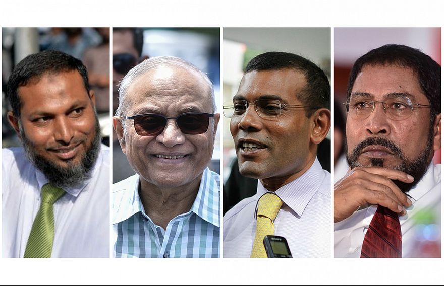 ސިޔާސީ ލީޑަރުން ޖަލަށް ލުމުގެ ޒިންމާ ނަޝީދު ނަންގަވަން ޖެހިވަޑައިގަންނަވާނެ ކަމަށް ރައީސް ޔާމީން ވިދާޅުވިއިރު، ނަޝީދާއި ކުރީގެ ރައީސް މައުމޫން އަބްދުލްގައްޔޫމާއި އަދާލަތު ޕާޓީގެ ރައީސް އިމްރާން އަބްދުﷲ އާއި ޖުމްހޫރީ ޕާޓީގެ ލީޑަރު ގާސިމް އިބްރާހީމާއި ކުރީގެ ޑިފެންސް މިނިސްޓަރު މުހައްމަދު ނާޒިމާއި މައުމޫންގެ ދަރިކަލުން އަދި ދިއްގަރު ދާއިރާގެ މެމްބަރު ފާރިސް މައުމޫންގެ އިތުރުން ކުރީގެ ޕޮލިސް ކޮމިޝަނަރު އަދި ކިނބިދޫ ދާއިރާާގެ މެމްބަރު އަބްދުﷲ ރިޔާޒު ޖަލަށް ލީ މި ވެރިކަމުގަ އެވެ. އޭގެ އިތުރުން ރައްޔިތުންގެ މަޖިލިހުގެ އެހެން ދެ މެމްބަރެއް ކަމަށްވާ އަބްދުﷲ ސިނާން އާއި އިލްހާމް މުހައްމަދު ވެސް މިހާރު ހުންނެވީ ޖަލުގަ އެވެ.