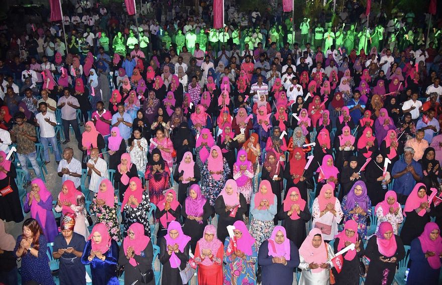 ޕީޕީއެމުން ބުނިގޮތުގައި، އަލިމަސްކާނިވާ ސަރަހައްދު ފުރައިލި އެ ޖަލްސާގައި 30،000 އަށް ވުރެ ގިނަ މީހުން ބައިވެރިވި އެވެ. އެ ޕާޓީގެ ރިޔާސީ ކެންޑިޑޭޓު ރައީސް ޔާމީނަށް ތާއީދު އޮތް މިންވަރު އިދިކޮޅަށް ދައްކާލައި، ޕީޕީއެމުން ތިބީ ހިތްހަމަޖެހިގެންނެވެ. އެ ޕާޓީން ބުނީ އެއްވެސް ރަށަކުން މީހަކު ނުގެނެސް ހަމައެކަނި މާލެ އިން ނުކުތް އަދަދާ މެދު އުފާވާ ކަމަށެވެ.
