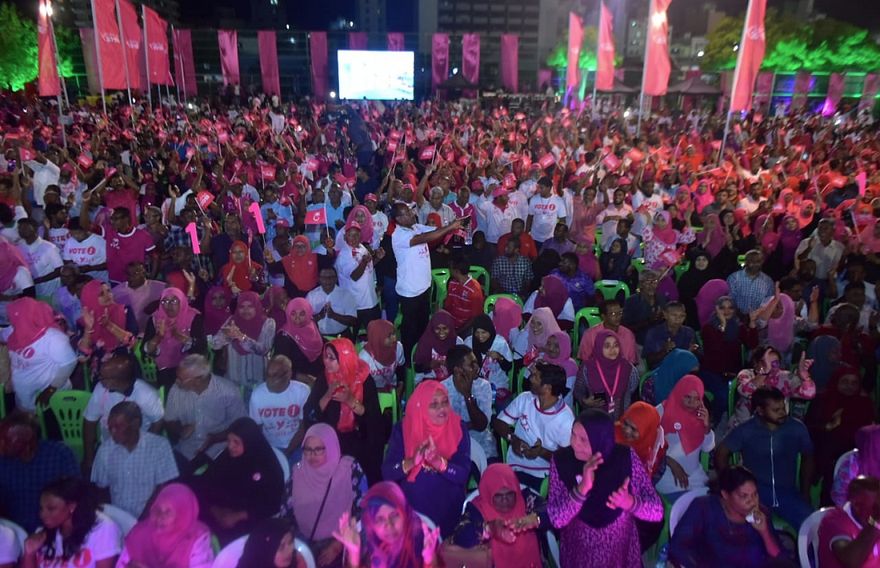 "ސައިޒް ދައްކާލުމަށް" ޕީޕީއެމްގެ ބޮޑު ޖަލްސާއެއް މި ބާއްވަނީ އިދިކޮޅު ފަރާތްތަކުން ކާނިވާ ސަރަހައްދުގައި ވަރަށް ގިނަ އަދަދެއްގެ މީހުންނާ އެކު މި މަހު ޖަލްސާއެއް ބާއްވައިވަނިކޮށް އެއަށް ރައްދު ދިނުމުގެ ގޮތުންނެވެ. މިރޭ ޕީޕީއެމްގެ ޖަލްސާ އަށް އެކި ރަށްރަށުން ވެސް އެތައް ސަތޭކަ ބަޔަކު މާލެ ގެނަ އެވެ. ސްޓޭޑިއަމް ސަރަހައްދުގައި ޕީޕީއެމުން ޖަހާފައިވާ ހުރިހާ ގޮނޑިއެއްހެން ފުރި، އެ ސަރަހައްދުގައި ވަރަށް ގިނަ ބަޔަކު ކޮޅަށް ވެސް އެބަތިއްބެވެ.
