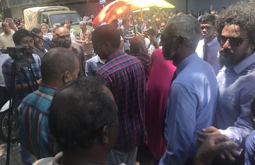 އިންތިހާބު ބާތިލްކޮށްފާނެތީ ނުރުހުން ފާޅުކުރަން އެ ސަރަހައްދަށް އެއްވެ ތިބި، އިދިކޮޅު ކޯލިޝަންގެ ޕާޓީތަކަށް ނިސްބަތްވާ ގިނަ އަދަދެއްގެ ބަޔަކު މިނިސްޓަރު މުއިއްޒާ ދިމާއަށް އެއްޗެހި ކިޔައި އަޑުގަދަކުރަން ފެށުމުން އޭނާ ވަނީ އެ ސަރަހައްދު ދޫކުރައްވައި ވަޑައިގެންފަ އެވެ.