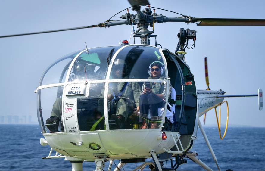 މިއަދު ހެނދުނުން ފެށިގެން ކަނޑުމަތީގައި ކުރި އަށް ދާ ފަރިތަކުރުންތައް ބައްލަވާލެއްވުމަށް މިނިސްޓަރު ވަޑައިގަތީ އިންޑިއާގެ ކޯސްޓް ގާޑް ހެލިކޮޕްޓަރެއްގަ އެވެ.