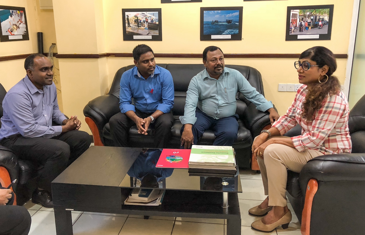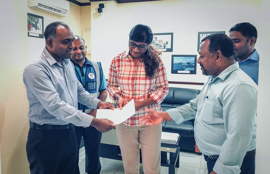މޯލްޑިވްސް ނެޝަނަލް ޑިޒާސްޓާ މެނޭޖްމެންޓް ސެންޓަރުގައި ބޭއްވި ރަސްމިއްޔާތެއްގައި ޔުނިވާސަލް އިން ދިން އެހީއާ ހަވާލުވެވަޑައިގަތީ ޑިފެންސް މިނިސްޓަރު މާރިޔާ އަހުމަދު ދީދީ އާއި އެ ސެންޓަރުގެ ޕްރޮޖެކްޓް ކޯޑިނޭޓާ ހިސާން ހަސަން އެވެ.