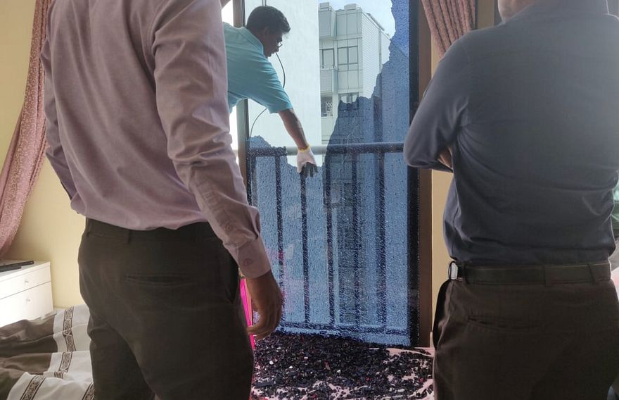 އެ އިމާރާތުގެ ފަސްވަނަ ބުރީގެ އެޕާޓްމަންޓަކާއި ހަ ވަނަ ބުރީގެ އެޕާޓްމަންޓެއްގެ ސްލައިޑް ކުރެވޭ ބޮޑު ދޮރެއްގެ ބިއްލޫރިގަނޑު މިއަދު ހެނދުނު ވަނީ ތަޅައިގެން ގޮސްފަ އެވެ. އެ އެޕާޓްމަންޓުތަކުން ވާހަކަ ދެއްކި ބައެއް މީހުން ބުނީ ބިއްލޫރި ޝީޓެއްގެ ބޮޑުމިން ހުރި ދެ ދޮރުފަތުގެ ބިއްލޫރިގަނޑު ވެސް ހަމަ ހުރެފައި، "އަޑެއް ކިޔާފައި" ތަޅައިގެން ދިޔައީ ކަމަށެވެ.
