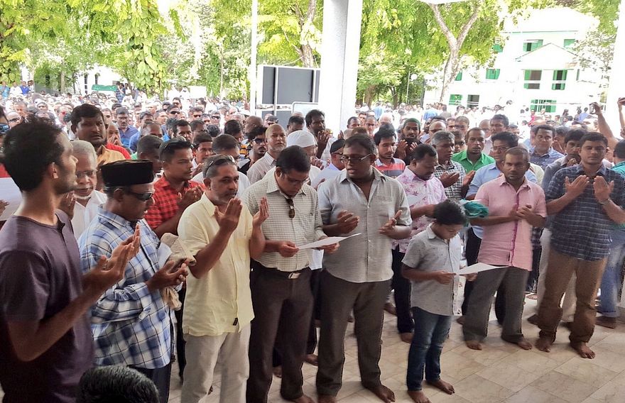 ކޮންމެ ހުކުރު ނަމާދަކަށް ފަހު އިދިކޮޅު އިއްތިހާދުން އަންނަނީ ސަރުކާރުގެ އަނިޔާވެރިކަމާ ދެކޮޅަށް އިސްލާމީ މަރުކަޒު ގޯތި ތެރޭގައި ދުއާކުރަމުންނެވެ. މިއަދާއި މިދިޔަ ހުކުރު ދުވަހު ވެސް ދުއާކުރި މީހުން ހުއްޓުވާފައި ނުވާނެ ކަމަށް ފުލުހުން ބުންޏެވެ.