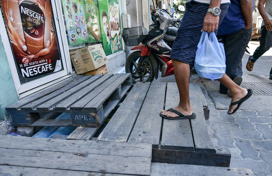 މާލޭ މަގެއްގައި ބާއްވާފައި އޮތް ޕެލެޓަކަށް އެރި ފައި ތާށިވެ، އަންހެނެއްގެ ފައި އިއްޔެ ރޭ ބިނދިއްޖެ އެވެ.