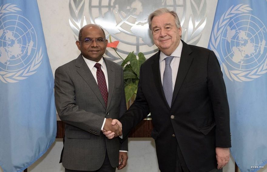 ފޮރިން މިނިސްޓްރީން ބުނީ އދ. ގެ ސެކްރެޓަރީ ޖެނެރަލާއެކު ބޭއްވި ބައްދަލުވުމުގައި މޫސުމަށް އަންނަމުންދާ ބަދަލުތަކާއި ދެމެހެއްޓެނިވި ތަރައްގީގެ ކަންކަމުގައި އަޑުއުފުލާނެ ކަމަށް ޝާހިދު ވިދާޅުވި ކަމަށެވެ.