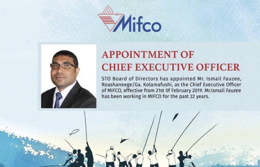 އެސްޓީއޯގެ ދަށުން ހިންގާ، ސަރުކާރުގެ މަސް ކުންފުނި މިފްކޯގެ ޗީފް އެގްޒެކްޓިވް އޮފިސަރު (ސީއީއޯ) ގެ މަގާމަށް އިސްމާއިލް ފައުޒީ އިއްޔެ އައްޔަންކޮށްފި އެވެ.