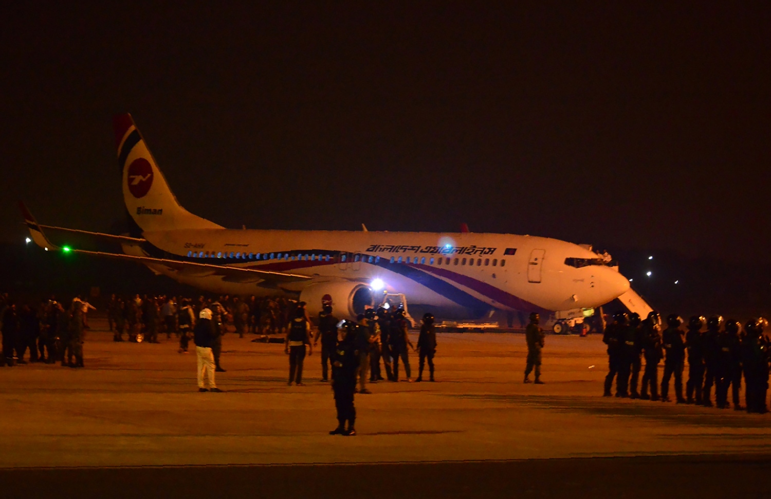 ޑާކާ (ފެބްރުއަރީ 24) - ވެރިރަށް ޑާކާ އިން ދުބާއީ އަށް ދަތުރުކުރަމުން ދިޔަ ބަންގްލަދޭޝްގެ ގައުމީ އެއާލައިން ބީމާންގެ މަތިންދާ ބޯޓެއް ހައިޖެކް ކުރި ނަމަވެސް އެ ބޯޓު ކުއްލި ހާލަތުގައި ޗިޓަގޮން ސިޓީ އަށް މިރޭ ޖެއްސުމުން ހުރިހާ ޕަސިންޖަރުންނާއި ކްރޫން ސަލާމަތްކޮށްފި އެވެ.