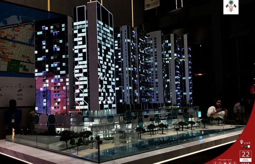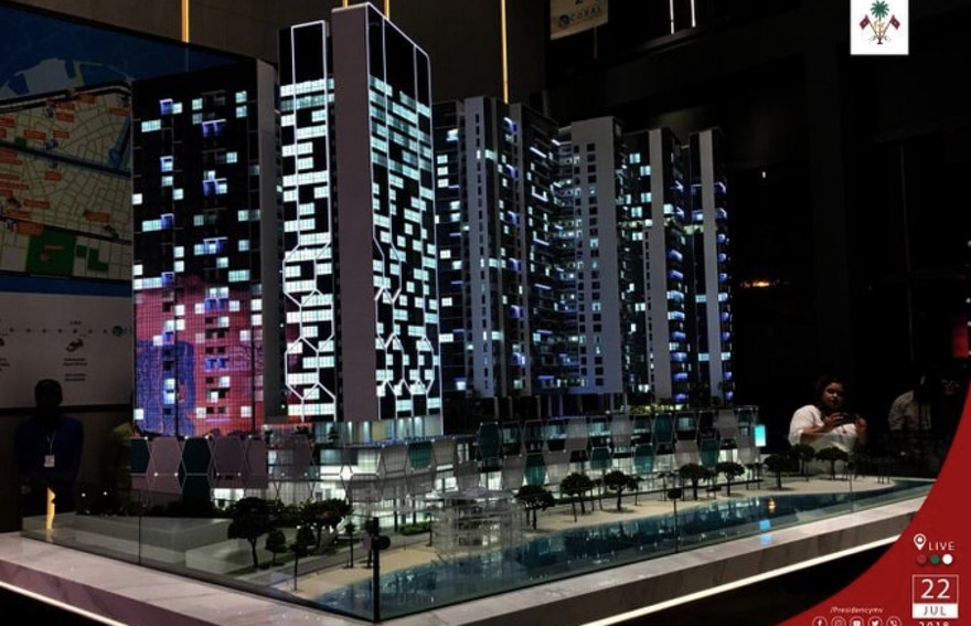 ކޮރަޕްޝަންގެ މުއާމަލާތްތަކެއް ހިމެނޭ ކަމަށް ތުހުމަތުކުރެވޭ އައިޖީއެމްއެޗުގެ 25 ބުރީގެ އިމާރާތް ހެދި ސިންގަޕޫރުގެ ޗަންހުއާ ކޮންސްޓްރަކްޝަނާ ހަވާލުކޮށްގެން ކުރީގެ ސަރުކާރުން ހިންގަން ހުއްދަ ދިން މަޝްރޫއުގައި މަތީ ފެންވަރުގެ 350 އެޕާޓްމަންތްގެ އިތުރުން ފިހާރަތަކާއި ކުޅިވަރު ކުޅޭ ތަންތަން ވެސް ހިމެނެ އެވެ.