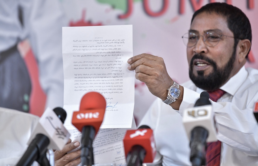 ގާސިމް މިމޭރުމުން ވާހަކަ ދައްކަވާފައި މިވަނީ ކުރިއަށް އޮތް ރައްޔިތުންގެ މަޖިލީހުގެ އިންތިހާބުގައި އެމްޑީޕީއަށް މެޖޯރިޓީ ނުލިބިއްޖެ ނަމަ ބަޣާވާތްކޮށް ސަރުކާރު ވައްޓައިލާނެ ކަމަށް ނަޝީދު ތަކުރާރުކޮށް ވާހަކަ ދައްކަވާފައި ވަނިކޮށެވެ.
