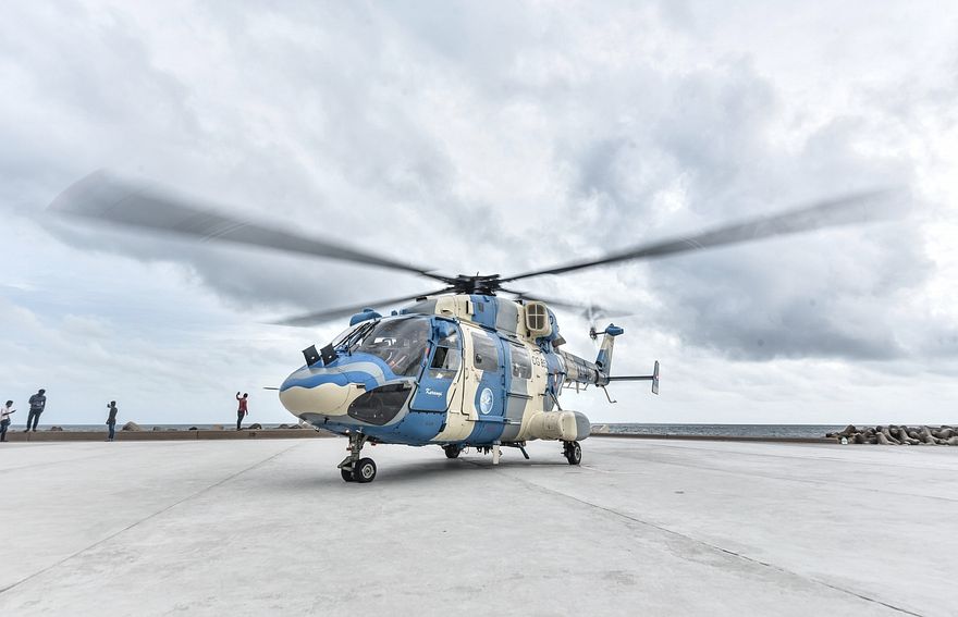 އިންޑިއާ އިން ދެ ހެލިކޮޕްޓަރެއް ރާއްޖޭގައި އޮޕަރޭޓް ކުރާއިރު، ފުރަތަމަ ހެލިކޮޕްޓަރު ގެނައީ ކުރީގެ ރައީސް މުހައްމަދު ނަޝީދުގެ ވެރިކަމުގައި 2010 ގަ އެވެ. ސ. ގަން އެއާޕޯޓުގައި ބާއްވާފައި އޮންނަނީ އެ ހެލިކޮޕްޓަރެވެ. ފަހުން ހަދިޔާކުރި ހެލިކޮޕްޓަރު އޭޕްރީލް، 2011 ގައި ރާއްޖެ ގެނެސް، އޮޕަރޭޓް ކުރަނީ ލ. ކައްދޫ އެއާޕޯޓުގައި އިންޑިއާ ސަރުކާރުން ހަދައި ދީފައިވާ ހޭންގަރުގައި ބާއްވައިގެންނެވެ.