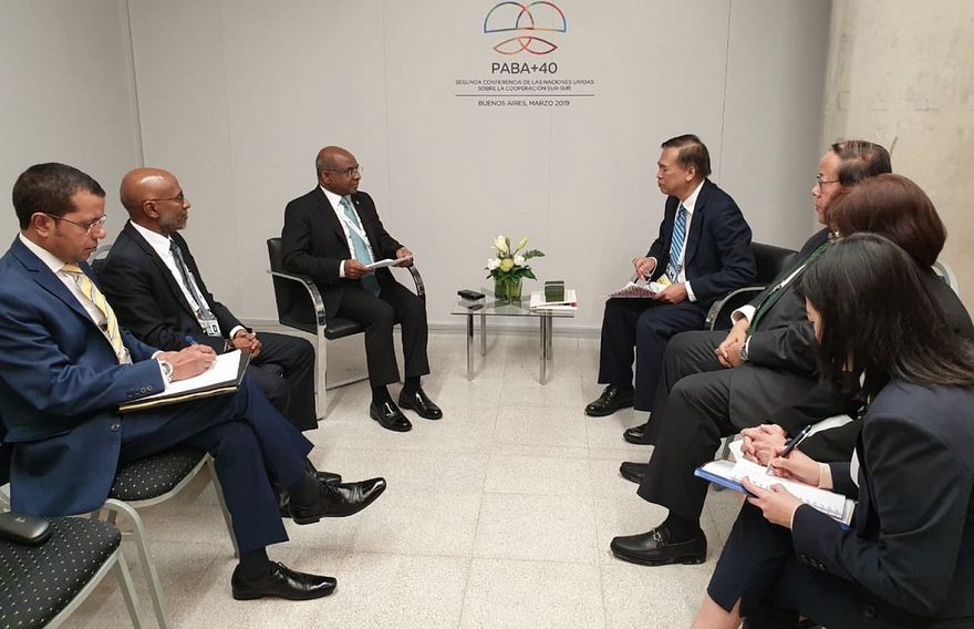 އާޖެންޓީނާގައި އދ. ގެ ކޮންފަރެންސެއްގެ ހަވާސާގައި ފޮރިން މިނިސްޓަރު ވަނީ ތައިލެންޑްގެ އިސް ވަފްދަކާ ބައްދަލުކުރައްވައި ދެ ގައުމުގެ ގުޅުން ވަރުގަދަ ކުރުމަށް މަޝްވަރާ ކުރައްވައިފަ އެވެ.