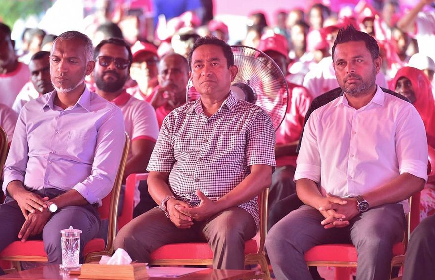 ޕީޕީއެމްގެ ނައިބުންގެ ގޮތުގައި އަލަށް ހަމަޖެއްސީ ޝިޔާމްގެ އިތުރުން ގުރައިދޫ ދާއިރާ އަށް ހޮވިވަޑައިގެންނެވި ޣައްސާން މައުމޫނާއި ކުރީގެ ހައުސިން މިނިސްޓަރު މުހައްމަދު މުއިއްޒެވެ.