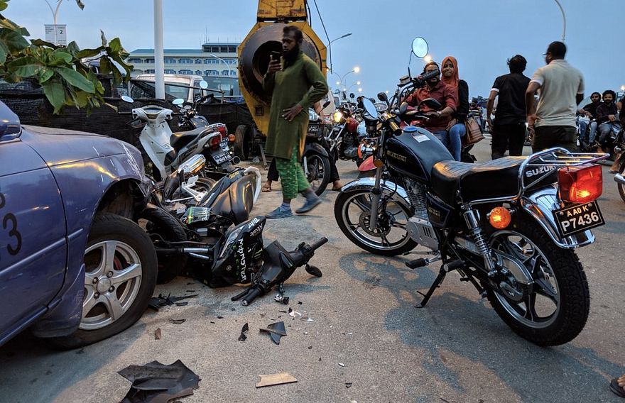 ދެ ސައިކަލު ޖެހި ހިނގި މި އެކްސިޑެންޓުގައި، އަނެއް ސައިކަލުގައި އިން މީހާއަށް ވެސް މާބޮޑު އަނިޔާއެއް ނުލިބެ އެވެ.