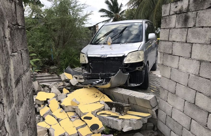 ގދ. ތިނަދޫގައި މިއަދު ހަވީރު ހިނގި އެކްސިޑެންޓެއްގައި ކޮންޓްރޯލުން ނެއްޓުނު ކާރެއް ގެއެއްގެ ފާރެއްގައި ޖެހި، ފާރު ވެއްޓިއްޖެ އެވެ.