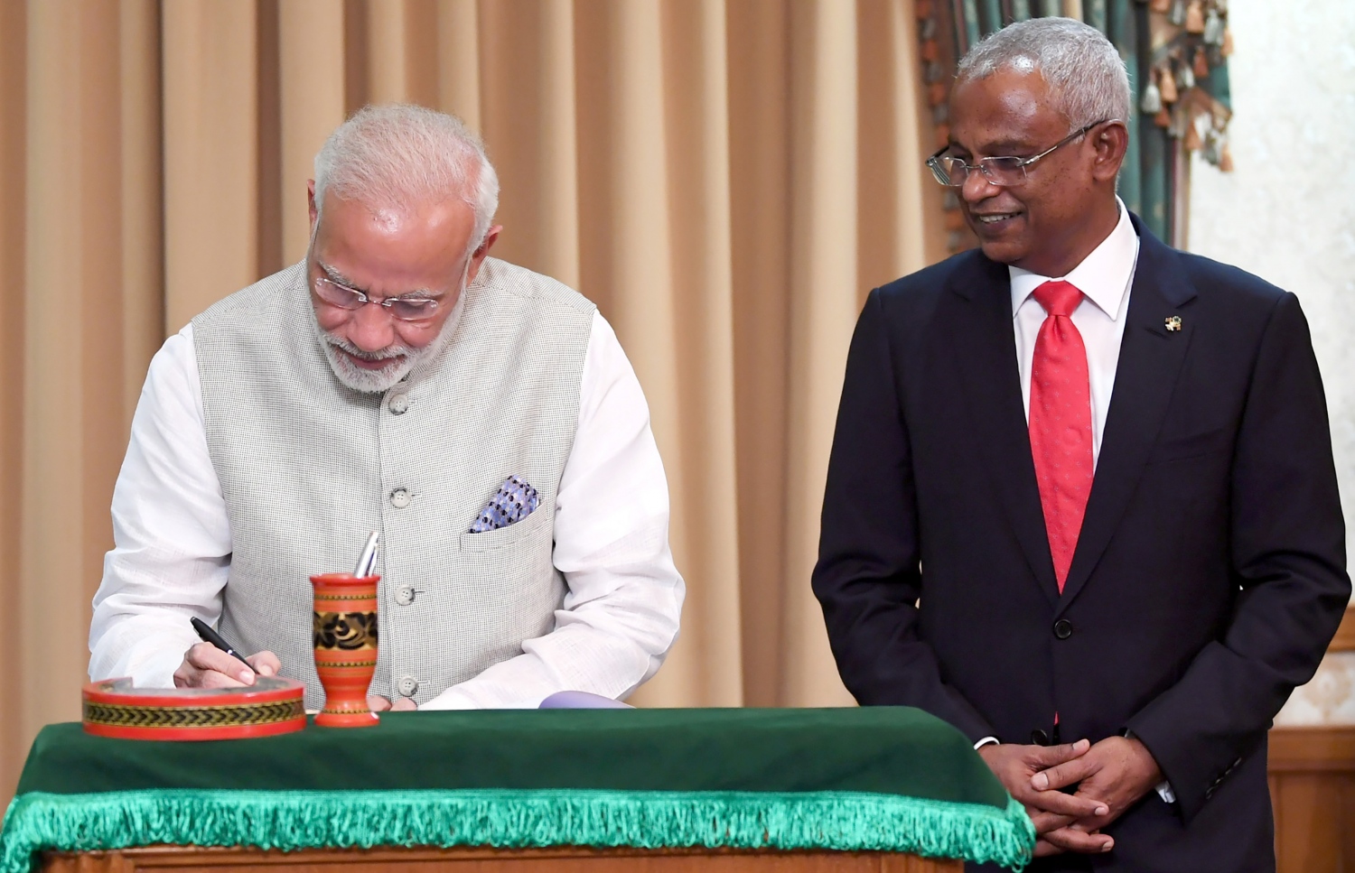 ކުރީގެ ރައީސް އަބްދުﷲ ޔާމީންގެ ސަރުކާރުގެ ދުވަސްވަރު އިންޑިއާ އާއި ރާއްޖެއާ ދެމެދު އޮތް ގުޅުން ވަރަށް ބޮޑަށް ހީނަރުވެފައި ވަނިކޮށް، އެ ގުޅުން ބަދަހި ކުރީ ވެސް މި ސަރުކާރުންނެވެ. ނަތީޖާއެއްގެ ގޮތުން މިހާރު އިންޑިއާއަކީ ރާއްޖެއާ އެންމެ ބޮޑު ގުޅުމެއް އުފެދިފައި އޮތް އެއް ގައުމެވެ.