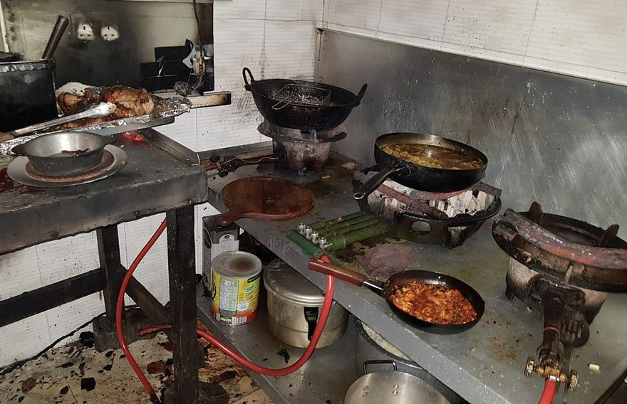 ކެފޭގައި މީހުން ހިދުމަތް ހޯދަން ތިއްބާ ހިނގި މި ހާދިސާގައި ރޯވެފައި ހުރީ ރެސްޓޯރަންޓުގައި ބޭނުންކުރާ ނުވަ ގޭސް ފުޅީގެ ތެރެއިން އެއް ފުޅީގަ އެވެ. އެ ފުޅި ގޮވައި އަލިފާން އިތުރަށް ފެތުރުމުގެ ކުރިން ފުލުހުން ވަނީ ފަސް ވަރަކަށް މިނެޓްގެތެރޭގައި އަލިފާން ނިއްވާލައިފަ އެވެ. ގޭސް ފުޅީގައި ރޯވެ ބަދިގޭގައި ހުރި އެހެން ބައެއް އެއްޗެހީގައި ވެސް ރޯވެފައި ވަނިކޮށް އަލިފާން ނިއްވާލަން ގަލޮޅު ޕޮލިސް ސްޓޭޝަންގެ އިތުރުން، ހާދިސާ ހިނގި ތަނާ ކައިރީގައި ހުންނަ ޗައިނާ ގާޑެން ރެސްޓޯރަންޓުން ވެސް އަލިފާން ނިވާ ދެ ފުޅި ގެންގޮސް ބޭނުންކުރި އެވެ. އަދި މީގެ އިތުރުން ތޫމް ކެފޭގައި ހުރި ތިން ފުޅިއެއް ވެސް ބޭނުންކުރި އެވެ.