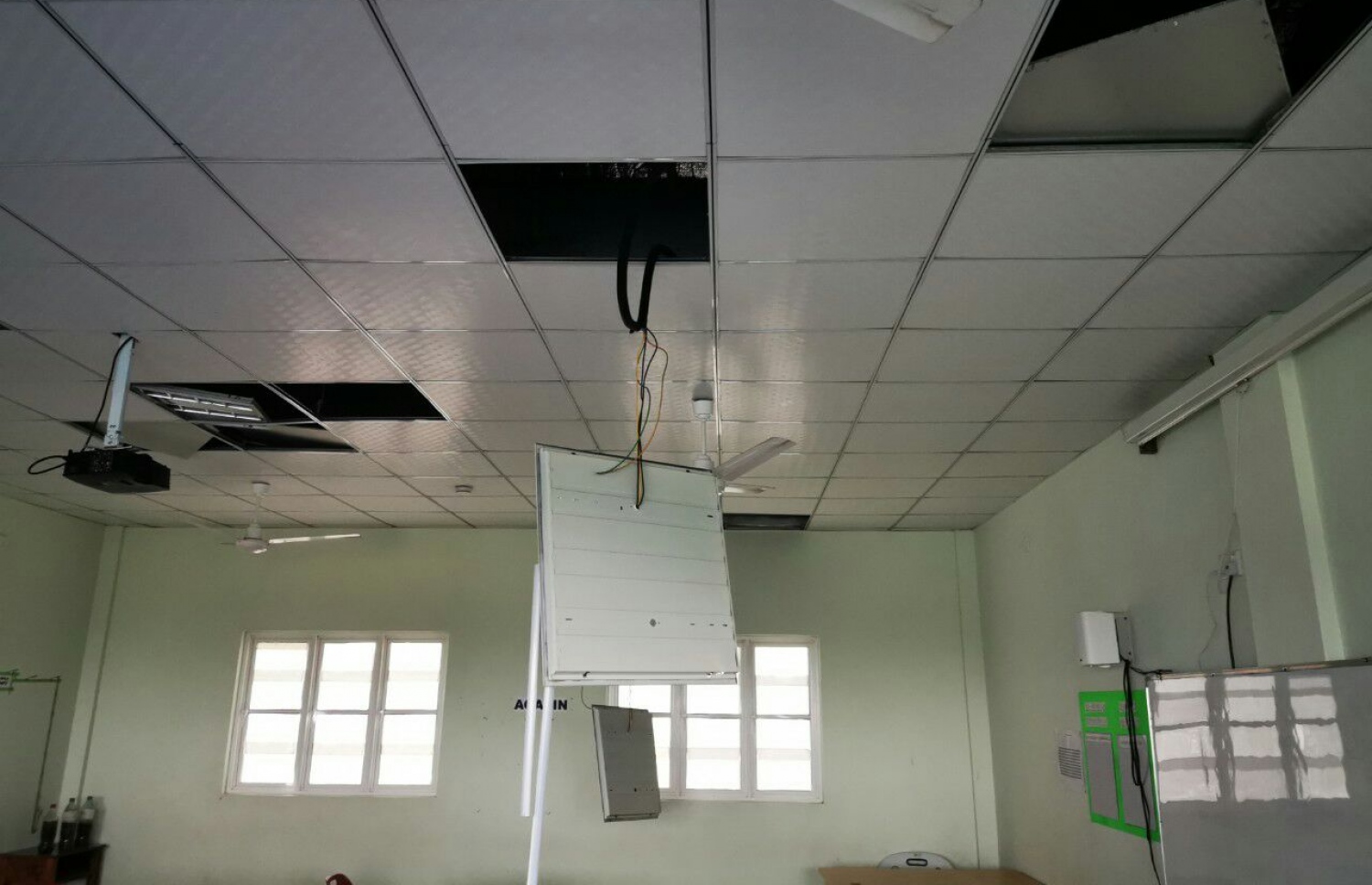 އެތަން ބޭނުންކުރަން ފެށިތާ ކުޑަ ދުވަސްކޮޅެއްގެ ތެރޭގައި ވެސް ކްލާސްރޫމެއްގެ ސީލިންގުން ބައެއް ވެއްޓުނު ކަމަށް ކުރިން ސޯޝަލް މީޑިއާގައި އަޑު ފެތުރެނެވެ. ނަމަވެސް އެސްޖޭ ކުންފުނިން ބުނީ ސީލިންގުން ބައެއް ނައްޓާލީ ސްކޫލުން އެދިގެން ސީއެސްއާރުގެ ދަށުން ކޮމްޕިއުޓަރު ލެބުގައި އިތުރު ލައިޓްތަކެއް ހަރުކޮށް އެތަނުގައި ޕްރޮޖެކްޓަރެއް ހަރުކޮށް އެއަށް ބޭނުންވާ ކޭބަލްތައް އެޅުމުގެ މަސައްކަތް ކުރުމަށެވެ.