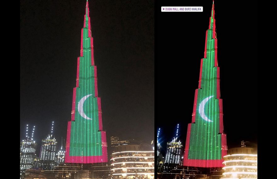 ރާއްޖޭގެ 54 ވަނަ މިނިވަން ދުވަސް ފާހަގަކުރަން ދިވެހި ދިދައަކުން ބުރުޖް ޚަލީފާ މިރޭ ދިއްލާލައިފި އެވެ.