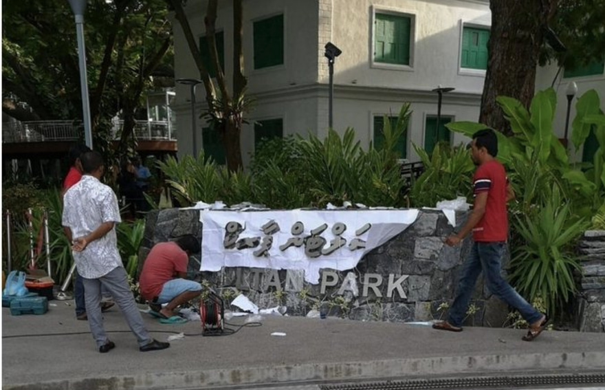މާލޭ ސިޓީ ކައުންސިލުން އިއްޔެ ވަނީ އެތަނުގެ ނަން އަލުން ސަލްޓަން ޕާކަށް ބަދަލުކޮށް ބޯޑު ހަރުކޮށްފަ އެވެ.