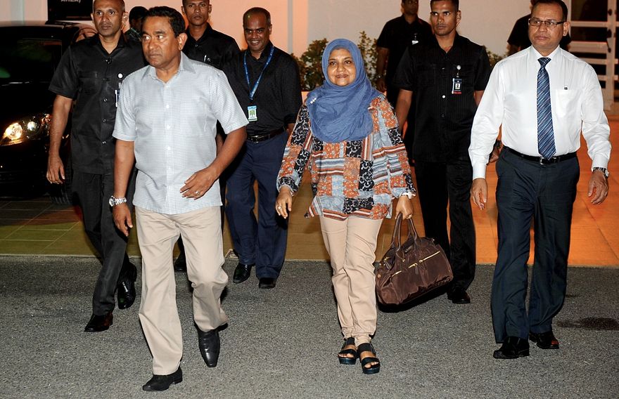 ރައީސް އަބްދުﷲ ޔާމީން އަބްދުލްގައްޔޫމާއި އެ މަނިކުފާނުގެ އަނބިކަނބަލުން ފާތިމަތު އިބްރާހީމް، މެލޭޝިޔާ އަށް ކުރައްވާ ދަތުރުފުޅެއްގައި ދާދި ދެންމެއަކު ފުރާވަޑައިގެންފި އެވެ.