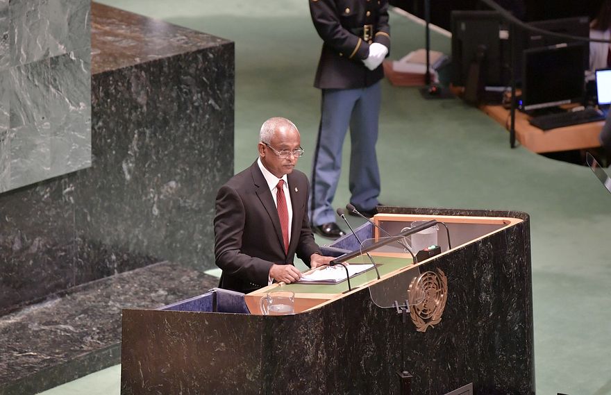 ރާއްޖޭގެ ރައީސަކު އދ.ގެ އާންމު މަޖިލީހުގައި ތަގުރީރު ނުކުރައްވާތާ ހަތް އަހަރު ފަހުން މިއަދު ރައީސް އިބްރާހިމް މުހައްމަދު ސޯލިހް އދ.ގައި ދެއްވި ތަގުރީރުގައި ކުރީގެ ރައީސް އަބްދުﷲ ޔާމީންގެ ސަރުކާރަށް ވަރަށް ބޮޑަށް ފާޑުވިދާޅުވެއްޖެ އެވެ.