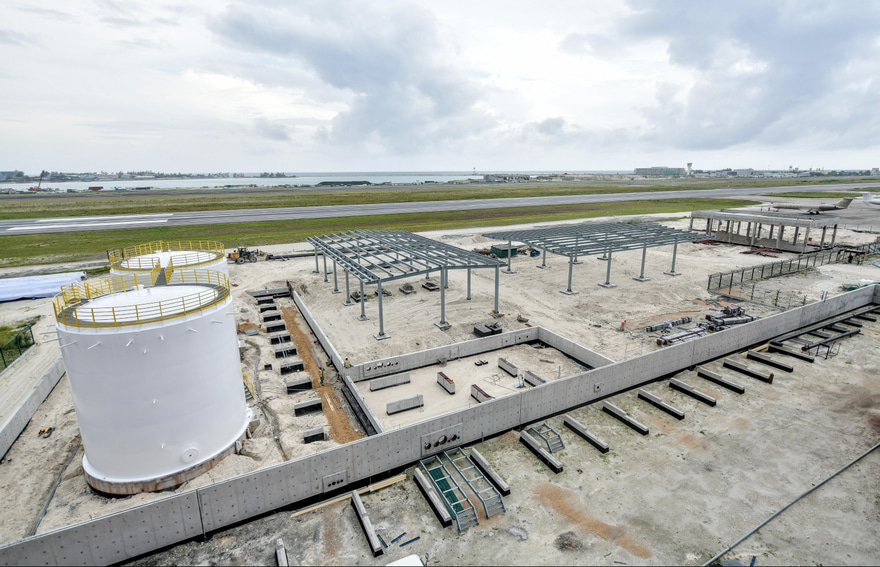 އެ ސަރަހައްދުގައި ހުރި ބޮޑެތި ޓޭންކުތަކުގެ ކޮންސްޓްރަކްޝަން މަސައްކަތް އެއްކޮށްހެން ވަނީ ނިމިފަ އެވެ. ޓެންކުތަކުގެ ދިގުމިނުގައި 15 ބުރީގެ ހުސް މިން ހުންނަ އިރު ޓޭންކު މައްޗަށް އެރުމުން މުޅި އެއާޕޯޓުގެ މަލަމަތި ވަރަށް ރީތިކޮށް ފެންނާނެ އެވެ.