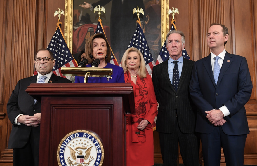 ހައުސްގެ ރައީސް ނެންސީ ޕެލޯސީ ވިދާޅުވީ ބާރުގެ ބޭނުން ނަހަމަ ގޮތުގައި ހިއްޕެވުމުގެ ކުށާއި ކޮންގްރެސް އަށް ހުރަސްއެޅުއްވިކަމުގެ ކުށާ މެދު ހައުސް އިން ނިންމި ގޮތް ރަސްމީކޮށް ސެނެޓަށް ހުށައަޅާނީ، ޓްރަމްޕްގެ ޝަރީއަތް ވަކިކޮޅަށް ނުޖެހި ކުރިއަށް ގެންދެވޭނެ ކަމުގެ ޔަގީންކަން ލިބި، އެކަމާ ގުޅޭ އުސޫލުތައް އެނގިވަޑައިގަތުމުން ކަމަށެވެ.