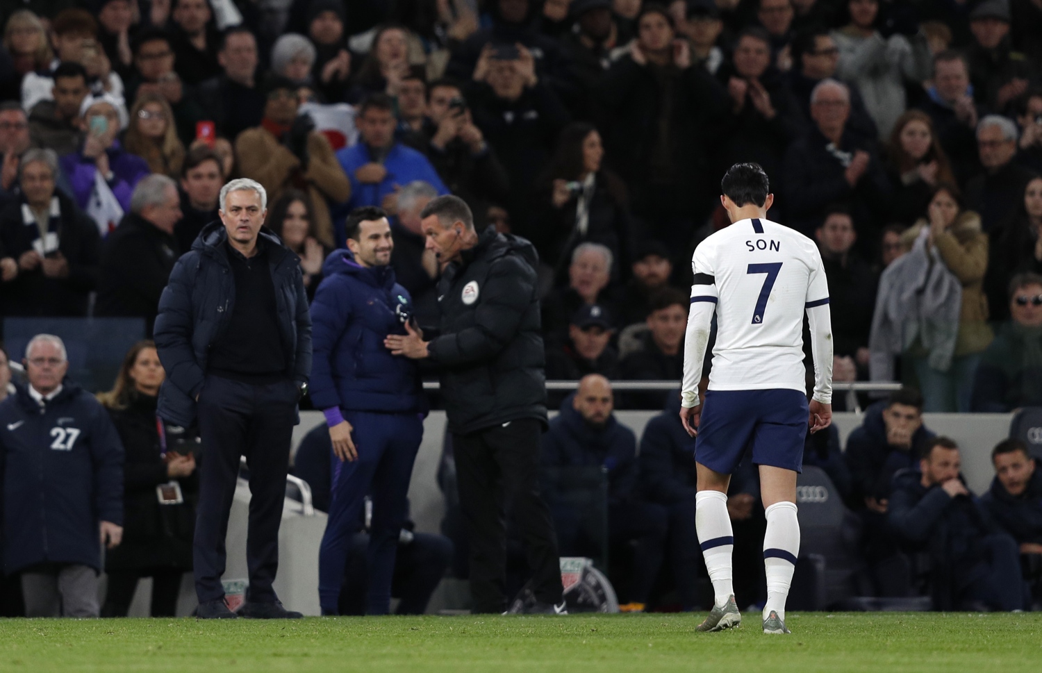 ދެ ވަނަ ހާފަށް ޓޮޓެންހަމުން ބަދަލަކާ އެކު ނުކުމެ ކުޅެމުން ދަނިކޮށް އެ ޓީމަށް މައްސަލަ ދިމާވީ މެޗުގެ 62 ވަނަ މިނިޓްގައި އެ ޓީމުގެ ދެކުނު ކޮރެއާގެ ފޯވާޑް ސޮން ހެއުން މިން އަށް ރަތް ކާޑު ދެއްކުމުންނެވެ. ސޮން އަށް ރަތް ކާޑު ދެއްކީ ޗެލްސީގެ އެންޓޯނިއޯ ރޫޑިގާ އަށް ނުރައްކާތެރި ފައުލެއް ކުރި ކަމަށް ބެލުމަށް ފަހު އެވެ. ވީއޭއާރުން ބަލައި ސޮން އަށް ރަތް ކާޑު ދައްކަން ނިންމުމުން މޮރީނިއޯ ވަނީ އެ ނިންމުމަށް ވަރަށް ބޮޑަށް ފާޑުކިޔައިފަ އެވެ. މޮރީނިއޯ ބުނީ އެ ފައުލަށް ދައްކަން ޖެހޭނީ ރީނދޫ ކާޑެއް ކަމަށެވެ.