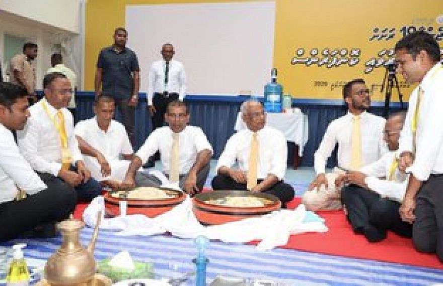"ގައުމެއް ހަލާކު ވެގެންދާނެ ހުރިހާ ސިފަތަކެއް އެ ބޭފުޅުންގެ ސިޔާސީ ހަރަކާތްތަކުގައި ދައްކަމުން އެ ގެންދަނީ. ނަސްލީ އިމްތިޔާޒުގެ އެންމެހައި ސިފަތައް އެ ބޭފުޅުންގެ ވާހަކަތަކުން އެ ބޭފުޅުންގެ ކޮންމެ ހަރަކާތަކުން އަޅުގަނޑުމެންނަށް ފެންނަމުން މި ދިޔައީ އަދި ރާއްޖޭގެ ރައްޔިތުންނަށް މާ ބޮޑަށް ސާފުވަމުން މި ދިޔައީ މި ބޭފުޅުންނަކީ ހަމައެކަނި ފިތުނަފަސާދަ އުފައްދަން ތިއްބަވާ ބޭފުޅުންކަން،" އެހެން ޕާޓީތަކުގެ އެހީތެރިކަމާއި އެއްބާރުލުމާ އެކު ވެރިކަމަށް އާދެވުނު އެމްޑީޕީގެ ރައީސް ނަޝީދު ވިދާޅުވި އެވެ.