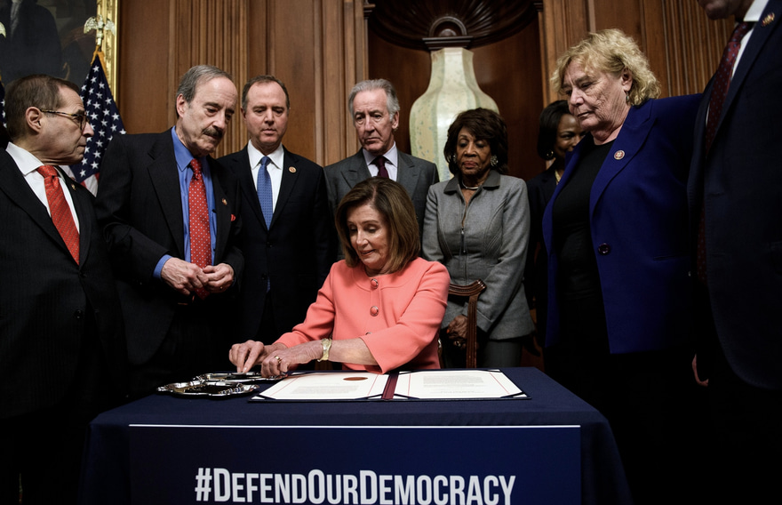 ގަރާރު ފާސްކޮށްފައި ވަނީ ޕާޓީ ލައިނަށް ބުރަވެ، 228-193 ވޯޓުންނެވެ. ހައުސްގެ ސްޕީކަ ނެންސީ ޕެލޯސޯ އާއި ޕްރޮސެކިއުޓަރުންގެ ގޮތުގައި ހަރަކާތްތެރިވާ، ގާނޫނު ހަދާ މަޖިލީހުގެ ޑިމޮކްރެޓިކް މެންބަރުން ވަނީ އިމްޕީޗްމަންޓް އާޓިކަލްގައި ސޮއި ކުރައްވައިފަ އެވެ. ޓްރަމްޕް އިމްޕީޗްކުރަން ހައުސް އިން ފާސްކޮށްފައި ވަނީ ޑިސެމްބަރު 18 ގަ އެވެ.