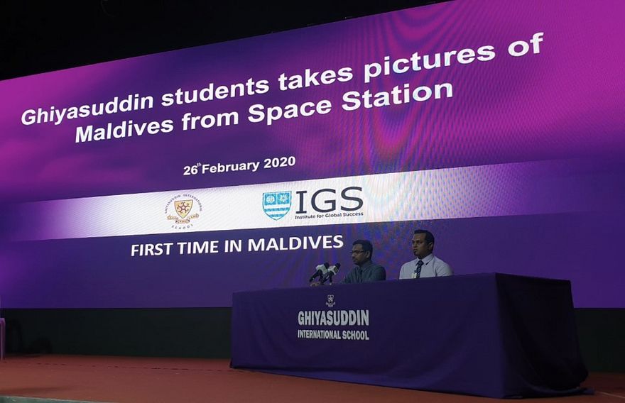އިންޓަނޭޝަނަލް ސްޕޭސް ސްޓޭޝަންގެ ކެމެރާ ބޭނުންކޮށްގެން ދުނިޔޭގެ އެކި ތަންތަނުގެ ފޮޓޯ ނަގަން ޣިޔާސުއްދީން އިންޓަނޭޝަނަލް ސްކޫލުގެ ދަރިވަރުން ތައްޔާރުވެއްޖެ އެވެ.