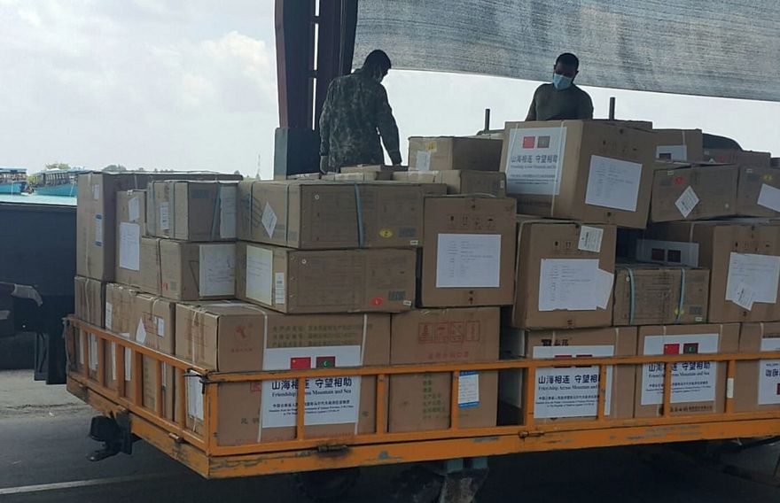 ޗައިނާ އިން ފޮނުވި ތަކެތި ކްލިއާކުރުމުގެ މަސައްކަތުގައި އެމްއެންޑީއެފް އިން ވަނީ ބައިވެރިވެފަ އެވެ. ރާއްޖެ އަށް ހަދިޔާކޮށްފައިވާ ތަކެތީގެ ތެރޭގައި އެކި ބާވަތުގެ ބޭހާއި އިމަޖަންސީ ހާލަތެއްގައި ބޭނުންވާ ތަކެތި ހިމެނެ އެވެ.