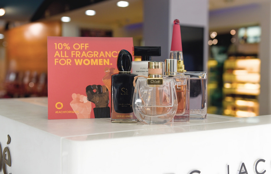 އެ ފިހާރައިން ވިއްކާ ބްރޭންޑުތަކުގެ ތެރޭގައި "ޑިއޯ" އާއި "ޓޮމް ފޯޑް" އާއި "ރާލްފް ލޮރެން" އަދި "ޕްރާޑާ" ފަދަ މަޝްހޫރު ބްރޭންޑުތައް ހިމެނެ އެވެ. ލެކިއުޓުން، އެ ފިހާރަ އިން ވިއްކާ ހުރިހާ ސެންޓަކީ ވެސް އޮރިޖިނަލް ސެންޓު ކަމުގެ ޔަގީންކަން ދެ އެވެ. މީގެ އިތުރުން މޭކަޕުގެ ސާމާނާއި ރީތިވާން ބޭނުންވާ ސާމާނު އަދި އެކްސަސަރީޒް ވެސް ލިބެން ހުންނާނެ އެވެ.
