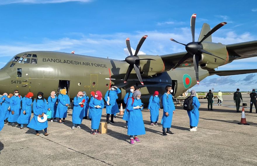 ބަންގްލަދޭޝް އާއި ނޭޕާލުގައި ތާށިވެފައި ތިބި ދިވެހިން، ބަންގްލަދޭޝްގެ އަސްކަރީ މަތިންދާ ބޯޓެއްގައި މިއަދު ރާއްޖެ ގެނެސްފި އެވެ.