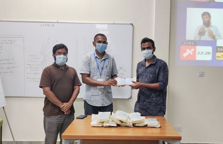 "ސުވާދިވް ކެފޭ" އިން އައްޑޫ ހޮސްޕިޓަލަށް މާސްކް ހަދިޔާ އިރު، މަޝްހޫރު ވިޔަފާރި ކުންފުނި، ހެޕީ މާކެޓުން ވަނީ ރެއިން ރެއަށް އެ ހޮސްޕިޓަލަށް ސެނިޓައިޒާ ފޯރުކޮށް ދިނުމުގެ މަސައްކަތް ވެސް ކޮށްފަ އެެވެ.