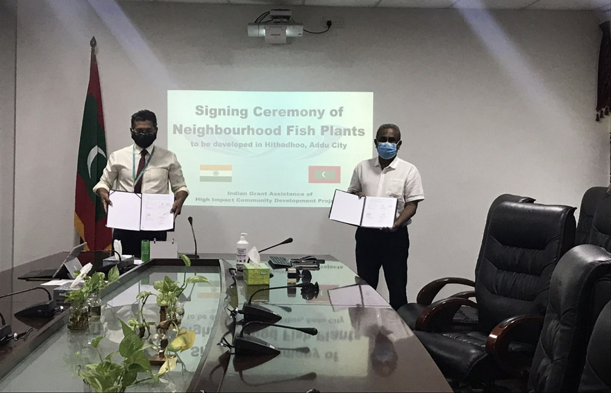 ގޭދޮށު މަސް ޕްލާންޓްތައް ހެދުމާއި އައްޑޫގެ އިތުރު މަޝްރޫއުތަކެއް ކުރިއަށް ގެންދަން ރާއްޖެ އާއި އިންޑިއާއާ ދެމެދު ސޮއިކޮށްފައި ވަނީ މި އަހަރުގެ ފެބްރުއަރީ މަހުގެ 2 ގަ އެވެ.