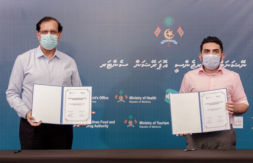 މިއަދު ބޭއްވި ރަސްމިއްޔާތެއްގައި މި ޓެސްޓު ކިޓްތައް ހެލްތު މިނިސްޓަރު އަބްދުﷲ އަމީންއާ ހަވާލުކޮށްދެއްވީ ރާއްޖޭގައި ހުންނަވާ ޑަބްލިއުއެޗްއޯގެ މަންދޫބު ޑރ. އަރްވިންދު މާތުރެވެ.